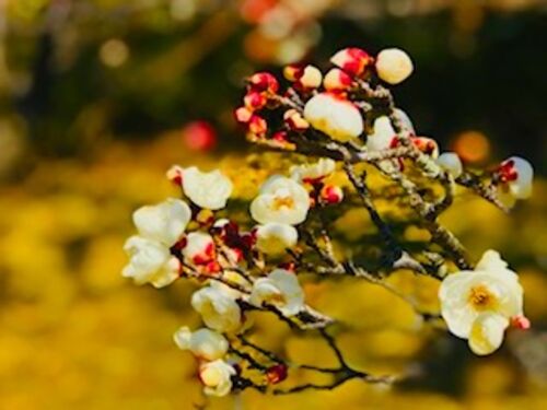 公園の梅は開いて人を呼び麗らか賑やかな休日よ ー 暖かい